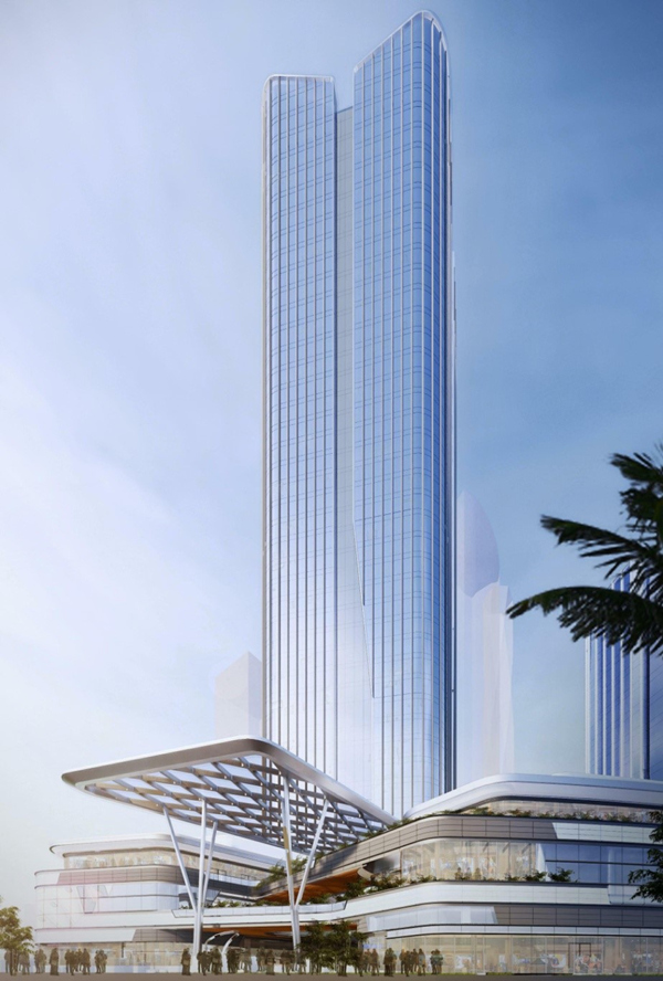 中國電建大灣區(qū)科創(chuàng)中心基地位于廣東省廣州市花都區(qū),是由中電建(廣州)城市投資發(fā)展有限公司投資開發(fā)建設(shè)。該項目幕墻形式主要包括玻璃幕墻、鋁板幕墻等,總建筑面積約為62000平方米,幕墻面積38000平方米,建筑高度為162 1米。該項目是一棟超高層辦公樓,建成后將打造成為具備總部基地的地標性建筑。??跒I海新天地商業(yè)綜合體 位于海南省??谑校怯?